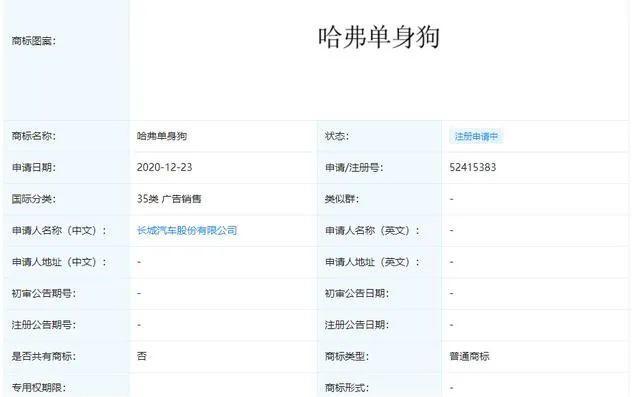 近日,長(zhǎng)城汽車因大量注冊(cè)新商標(biāo)一事引起大量的關(guān)注。據(jù)車叔了解,在長(zhǎng)城汽車這次注冊(cè)的商標(biāo)中,包括了“哈弗單身狗”“哈弗霹靂狗”“哈弗獵狗”“哈弗超級(jí)狗”等商標(biāo),國(guó)際分類這一欄涉及到運(yùn)輸工具以及廣告銷售,商標(biāo)狀態(tài)均為“商標(biāo)申請(qǐng)中”。