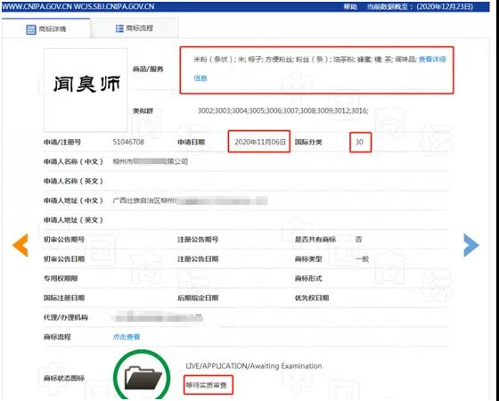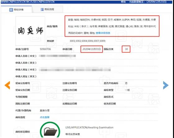 湖南某信息科技公司在2020年11月3日就搶先注冊了第50960706號“聞臭師”商標(biāo),指定使用在甜食、咖啡等第30類上。