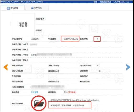 以“聞香師”為關(guān)鍵詞檢索中國商標(biāo)網(wǎng)后發(fā)現(xiàn),有人在2013年及2015年兩次提交“聞香師”商標(biāo)申請,指定使用在第3類,但兩商標(biāo)遭駁回均已失效。