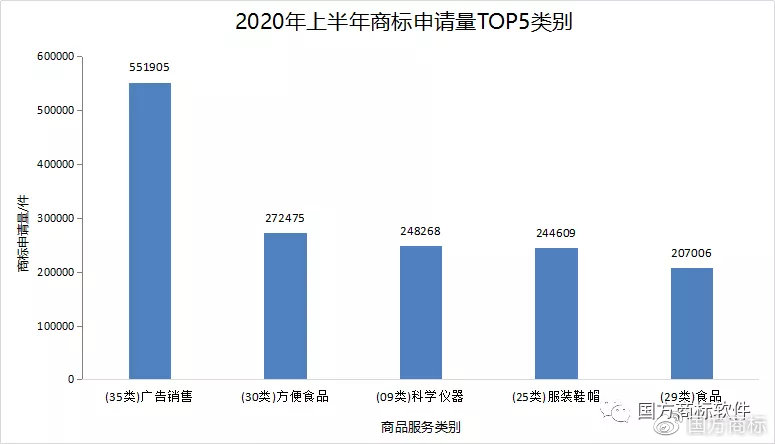 2、2020年上半年各類別商標(biāo)申請(qǐng)量統(tǒng)計(jì)分析