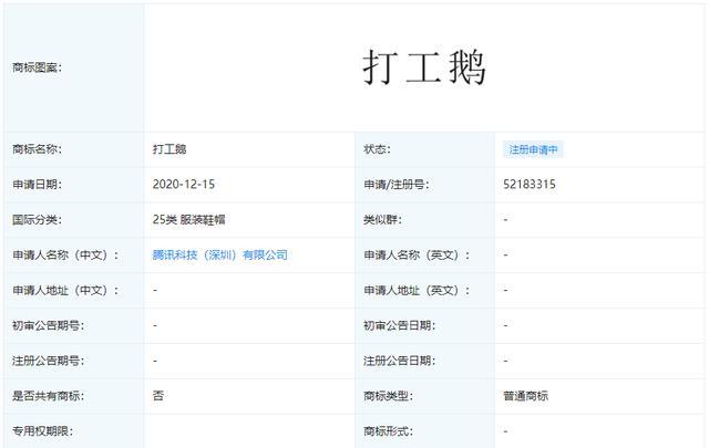 沒(méi)想到,騰訊也玩起了黑色幽默,申請(qǐng)注冊(cè)“打工鵝”商標(biāo)玩梗,可惜迎來(lái)網(wǎng)友圍攻群嘲。