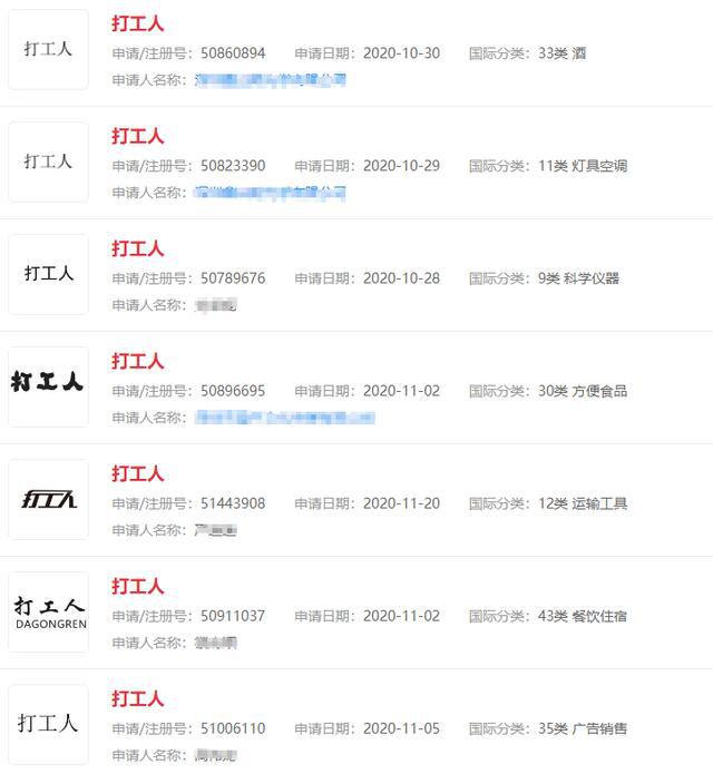 每一個(gè)網(wǎng)絡(luò)熱詞都逃不過(guò)商標(biāo)搶注的命運(yùn),小知查詢(xún)發(fā)現(xiàn),自“打工人”梗爆火之后,截至目前已有近兩百件相關(guān)商標(biāo)申請(qǐng),申請(qǐng)人有企業(yè)也有個(gè)人,目前都處于申請(qǐng)中狀態(tài)。