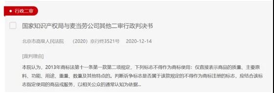 對此麥當(dāng)勞公司不服,向北京知識產(chǎn)權(quán)法院提起了行政訴訟。