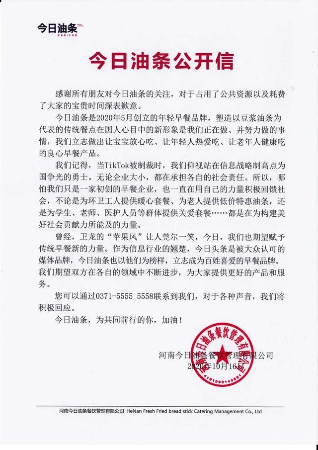 今日油條公司申請注冊的各種傍名牌商標 網絡截圖對此,今日油條公司負責人對媒體的回應也很直白,“天天刷今日頭條App,是忠實用戶,‘傍大牌’只是覺得好玩而已?!痹摴具€發(fā)布“公開信”,稱要以頭條為榜樣,做老百姓喜愛的早餐品牌。但廣州知識產權法院的開庭公告顯示,今日頭條所屬的北京字節(jié)跳動科技有限公司已將“今日油條”告上法庭。
