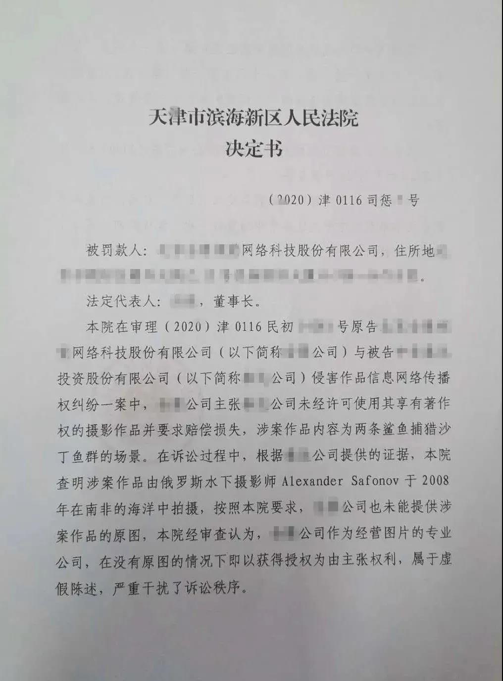 法院經(jīng)審查認(rèn)為,原告作為經(jīng)營圖片的專業(yè)公司,在沒有取得原圖的情況下即以獲得授權(quán)為由主張權(quán)利,屬于虛假陳述,嚴(yán)重干擾了訴訟秩序,應(yīng)予處罰。依據(jù)《最高人民法院關(guān)于民事訴訟證據(jù)的若干規(guī)定》,該院駁回原告起訴,作出罰款10萬元的處罰決定。
