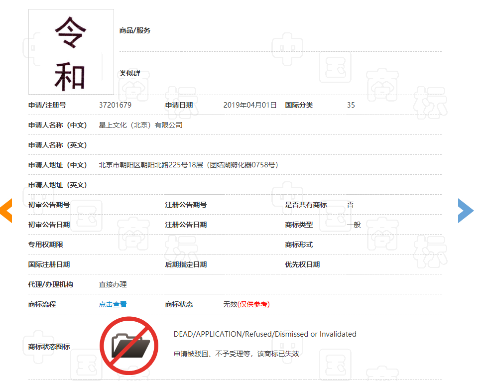 這個商標2020年2月駁回,駁回理由十分感人,除了說申請商標中“令和”為日本新年號,用作商標易造成不良社會影響外,在先的引證商標一共二十九個,你就說服氣不服氣吧!