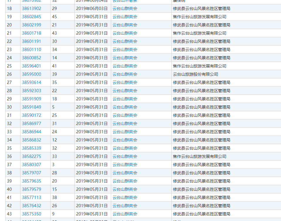 云臺山相關商標注冊信息達到325條,申請人大部分是修武縣云臺山風景名勝區(qū)管理局。