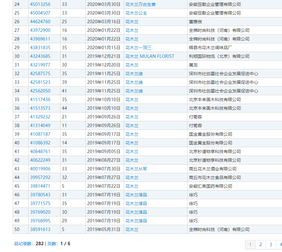 例如花木蘭、白居易等河南歷史名人,商標注冊申請人多為企業(yè)和個人,遍布全國許多省份。