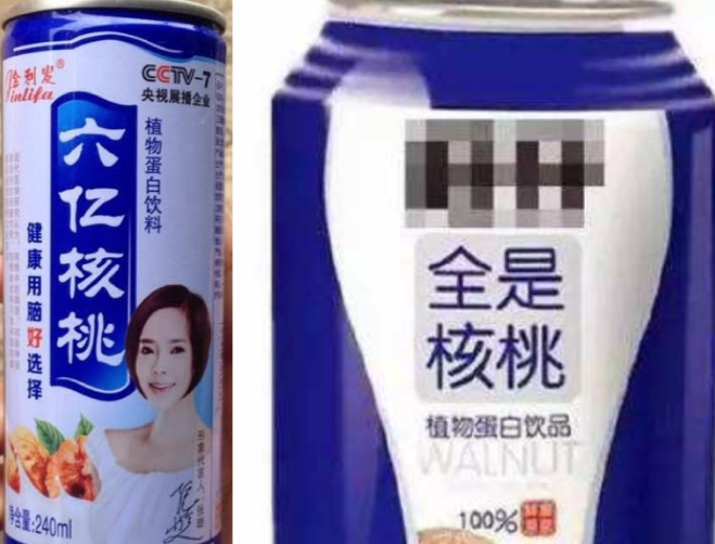 經當庭比對,被控侵權產品包裝與養(yǎng)元公司產品包裝相同,均為易拉罐、包裝箱和手提袋,被控侵權產品包裝上附加的文字、圖案、色彩及其排列組合,與養(yǎng)元公司“六個核桃”核桃乳的裝潢相似,足以使一般消費者誤認為與養(yǎng)元公司產品存在特定聯(lián)系,構成不正當競爭。