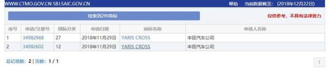 豐田Yaris是豐田公司推出的一款重要的小型車,在全球市場(chǎng)取得了不錯(cuò)的銷量成績(jī),目前在國(guó)內(nèi)銷售的車型有兩廂版YARIS L 致炫和三廂版YARIS L 致享。近日,行車視線從國(guó)家工商總局商標(biāo)局獲悉,豐田汽車公司已經(jīng)在華注冊(cè)了“YARIS CROSS”商標(biāo),未來(lái)其將被用為車輛的命名,從命名和外觀上就可以看出YARIS CROSS是一款跨界車,相比起普通版車型,看上去更具越野特征。由于目前商標(biāo)還在申請(qǐng)中,如果注冊(cè)成功將與上汽大眾Cross Polo展開(kāi)競(jìng)爭(zhēng)。