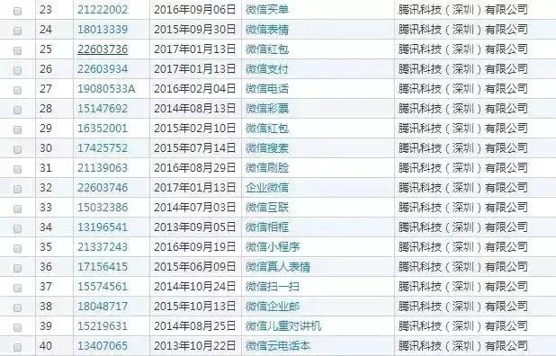 騰訊在商標(biāo)這方面還是有很強的防御保護意識的,單說微信這部分,包括“微信”、“微信紅包”、“微信小程序”等等都早已成功注冊了商標(biāo)。