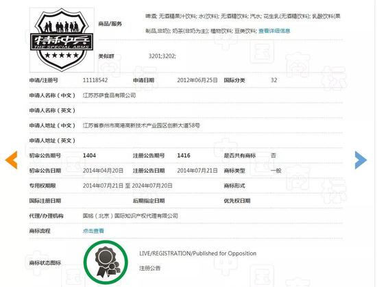 10月6日,蘇薩食品官微發(fā)出一條關(guān)于商標(biāo)的法律聲明,聲明的核心內(nèi)容是說,“特種兵”這個商標(biāo),是蘇薩食品在32類注冊通過的、且還在有效期內(nèi),但在第35類是不允許注冊的。重點來了,第35類商標(biāo)的類別是廣告銷售類,而第32類是啤酒飲料類。