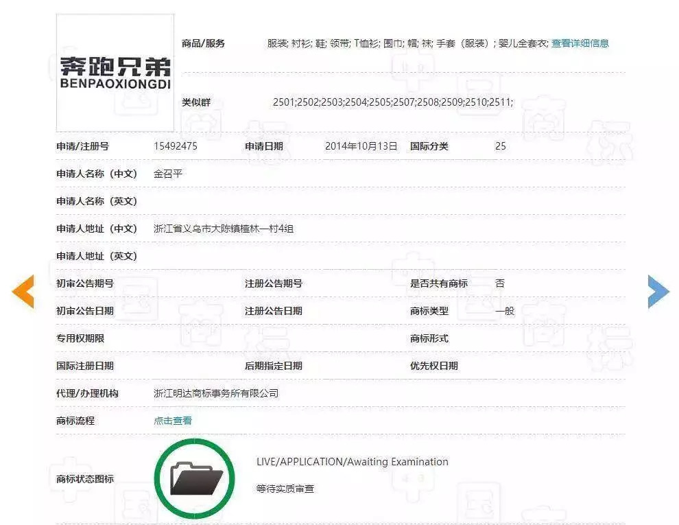 對于此次商標注冊,金召平表示申請商標是為了繡在服裝上,目前商標還沒有申請下來。