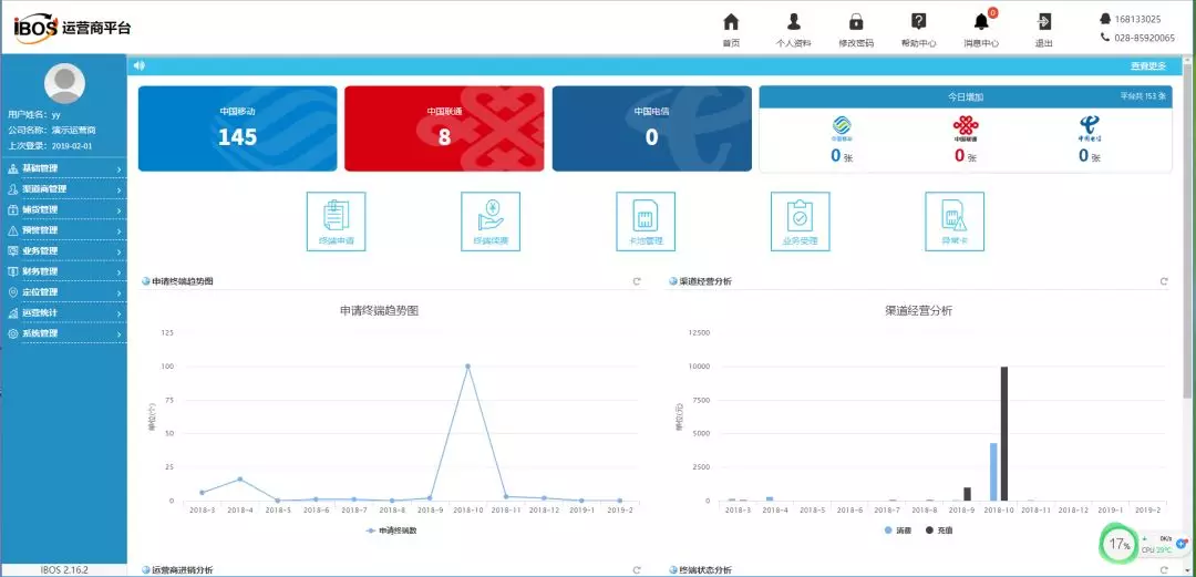 萬緯通IBOS產(chǎn)品組于2019-2-2成功發(fā)布了IBOS2.16.2版本,本次發(fā)布版本重點增強運營商與渠道商的物聯(lián)網(wǎng)卡管理功能。